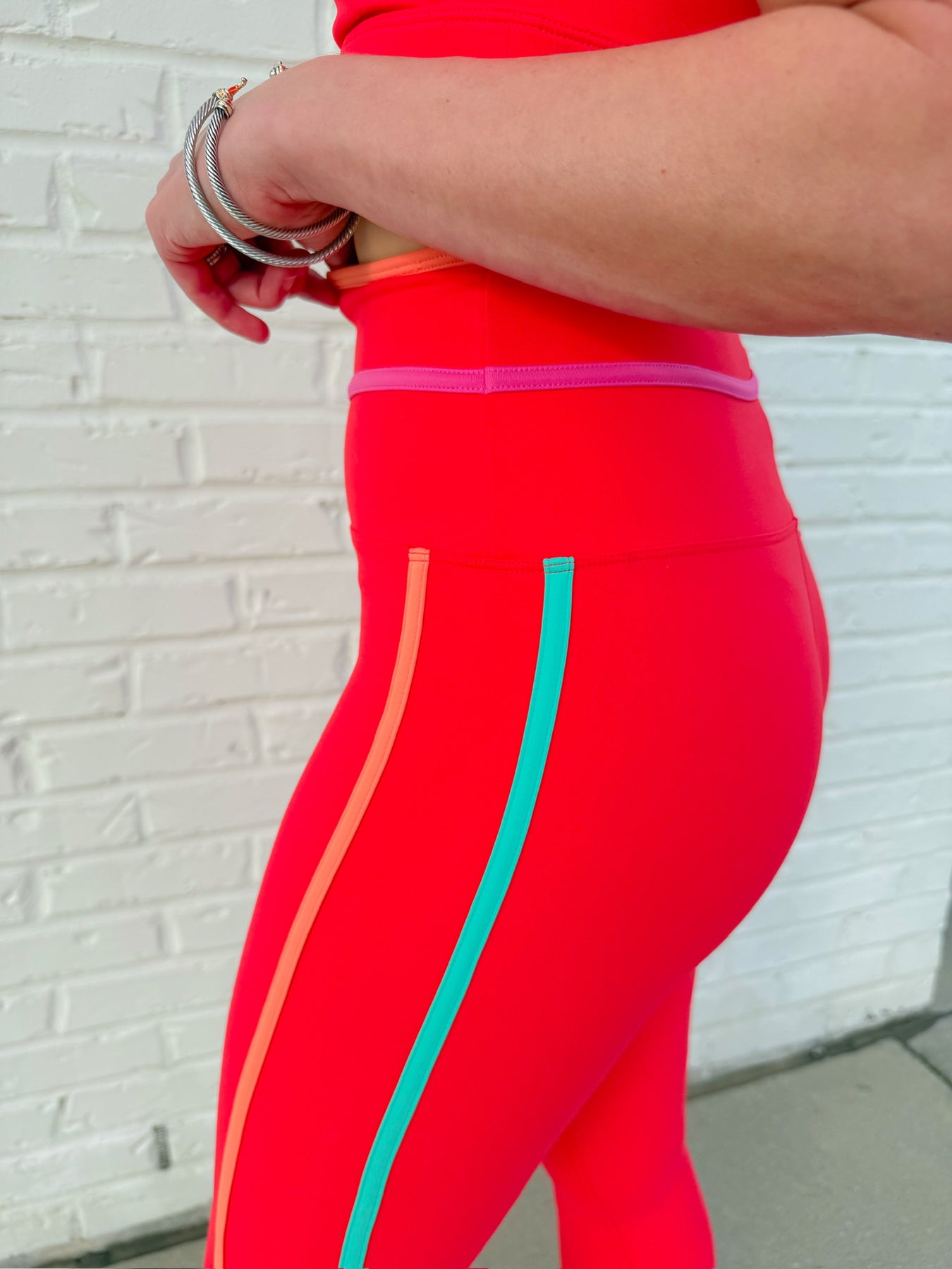 Contrast side piping for a sporty, elongating look
