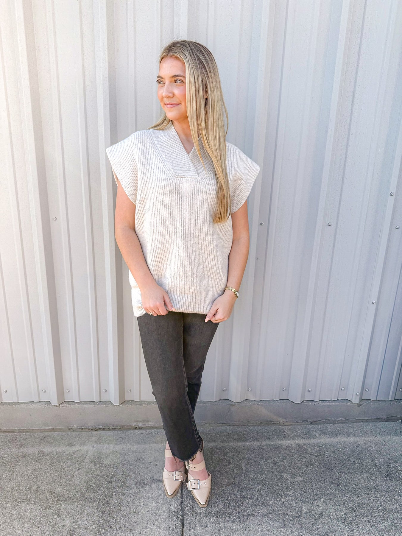 Simple, chic, and endlessly versatile — THE CLASSIC KNIT VEST features a soft ribbed texture and flattering V-neckline. Layer it over blouses or wear it solo for an effortlessly polished look all season long.