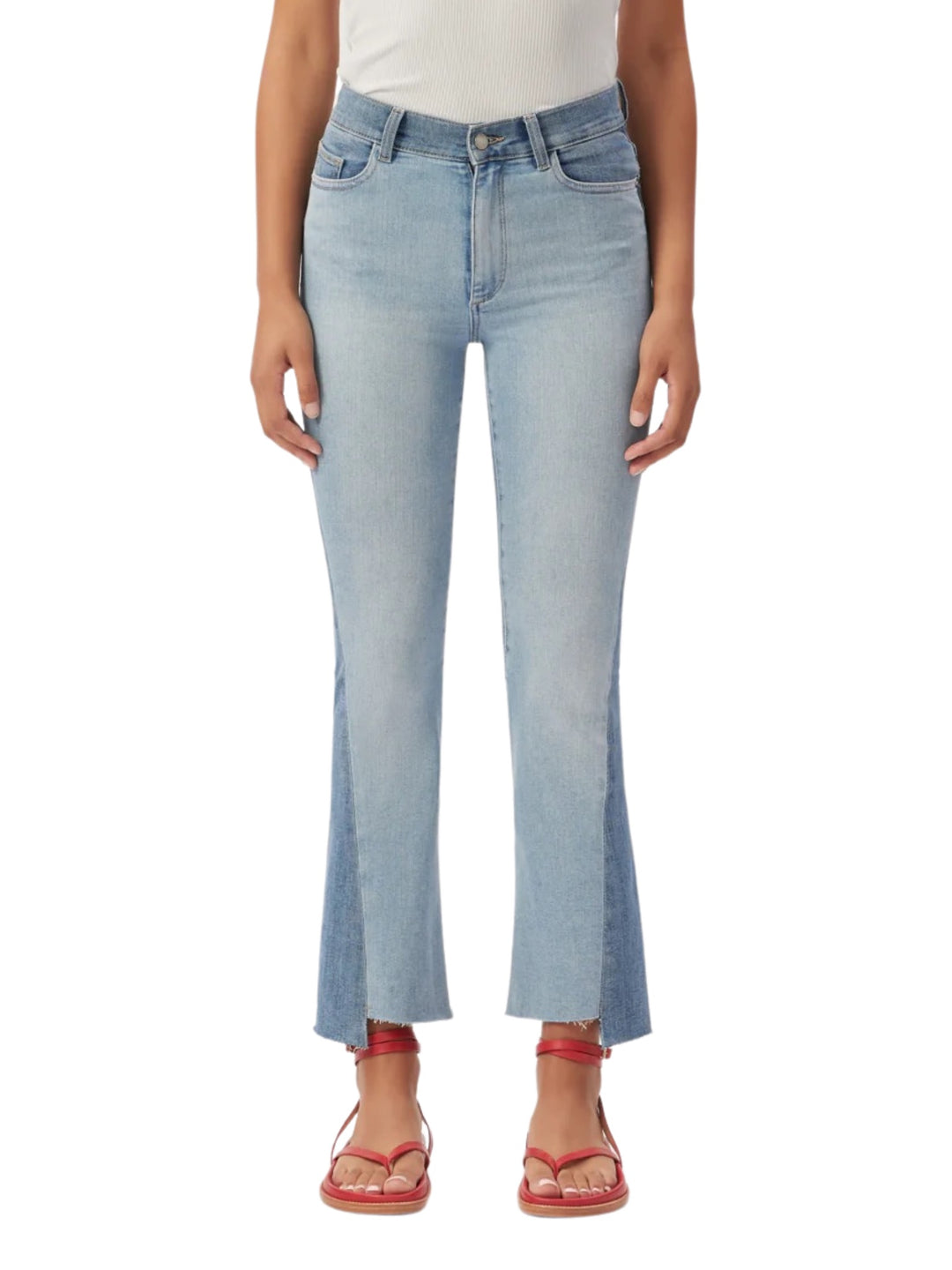 REMI STRAIGHT LEG JEAN - EGRET + LIGHT PINK