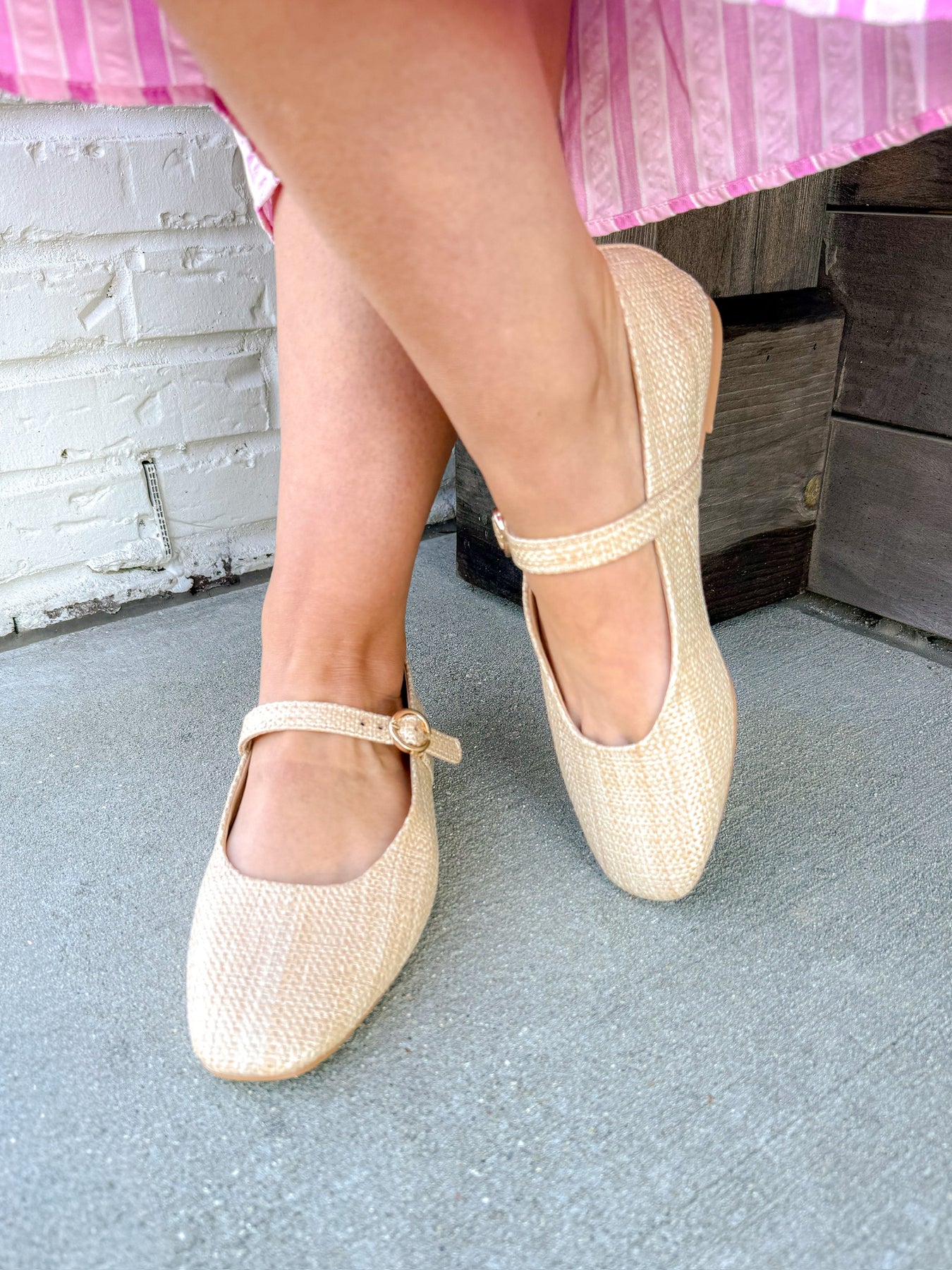 Ballet-core meets summer charm. The ANNABELLE flat in Natural Woven is a warm-weather twist on a classic silhouette, featuring a textured raffia-like finish and delicate strap. Lightweight, breathable, and endlessly versatile this is the perfect go-to for everyday adventures with a stylish flair.