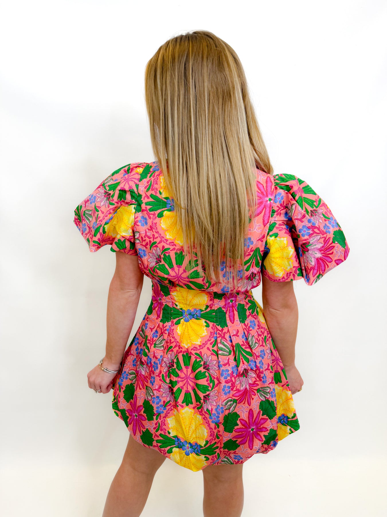 The WOW FACTOR DRESS features a vibrant floral print with bold tropical colors that instantly brighten any day. Designed with a flattering zip-front detail, structured collar, and dramatic puff sleeves, this dress blends playful energy with polished style.