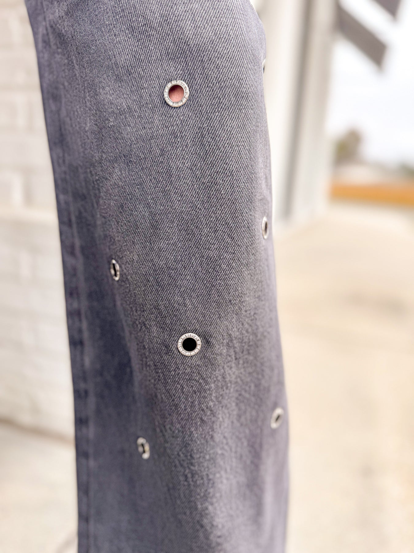 A relaxed silhouette, Hendrix features a high rise and full-length baggy leg that strikes the perfect balance between structure and slouch. Crafted from 100% cotton rigid denim, the Charmed wash showcases a black tone adorned with hand-applied crystal embellishments for subtle sparkle and standout detail.