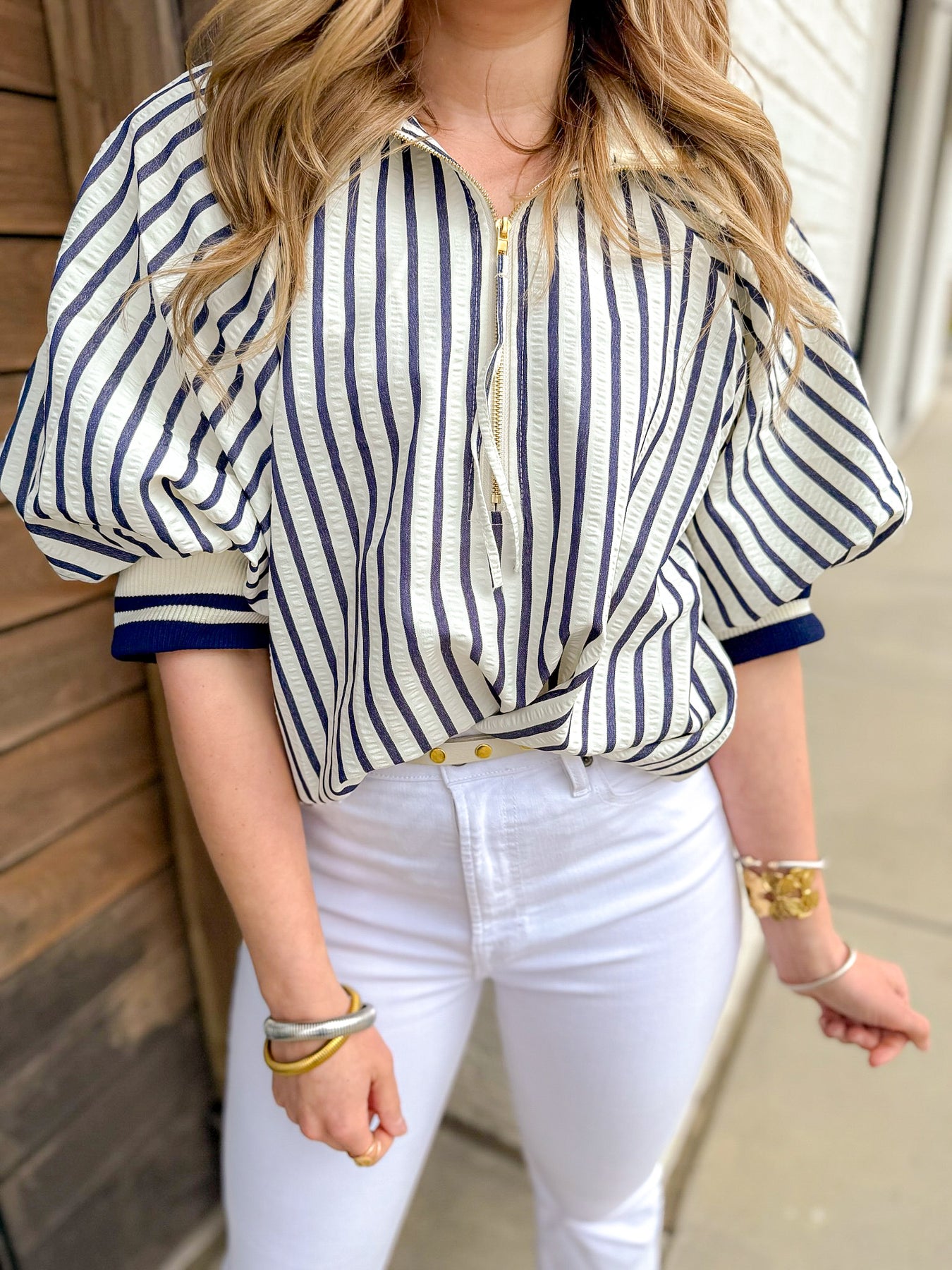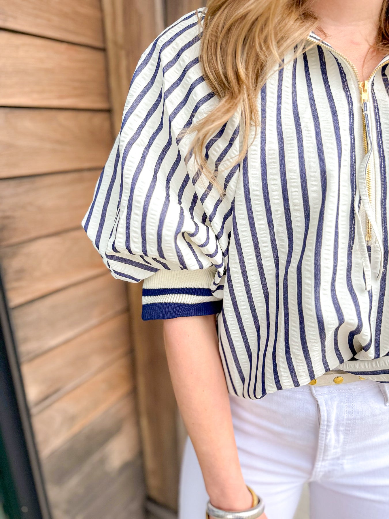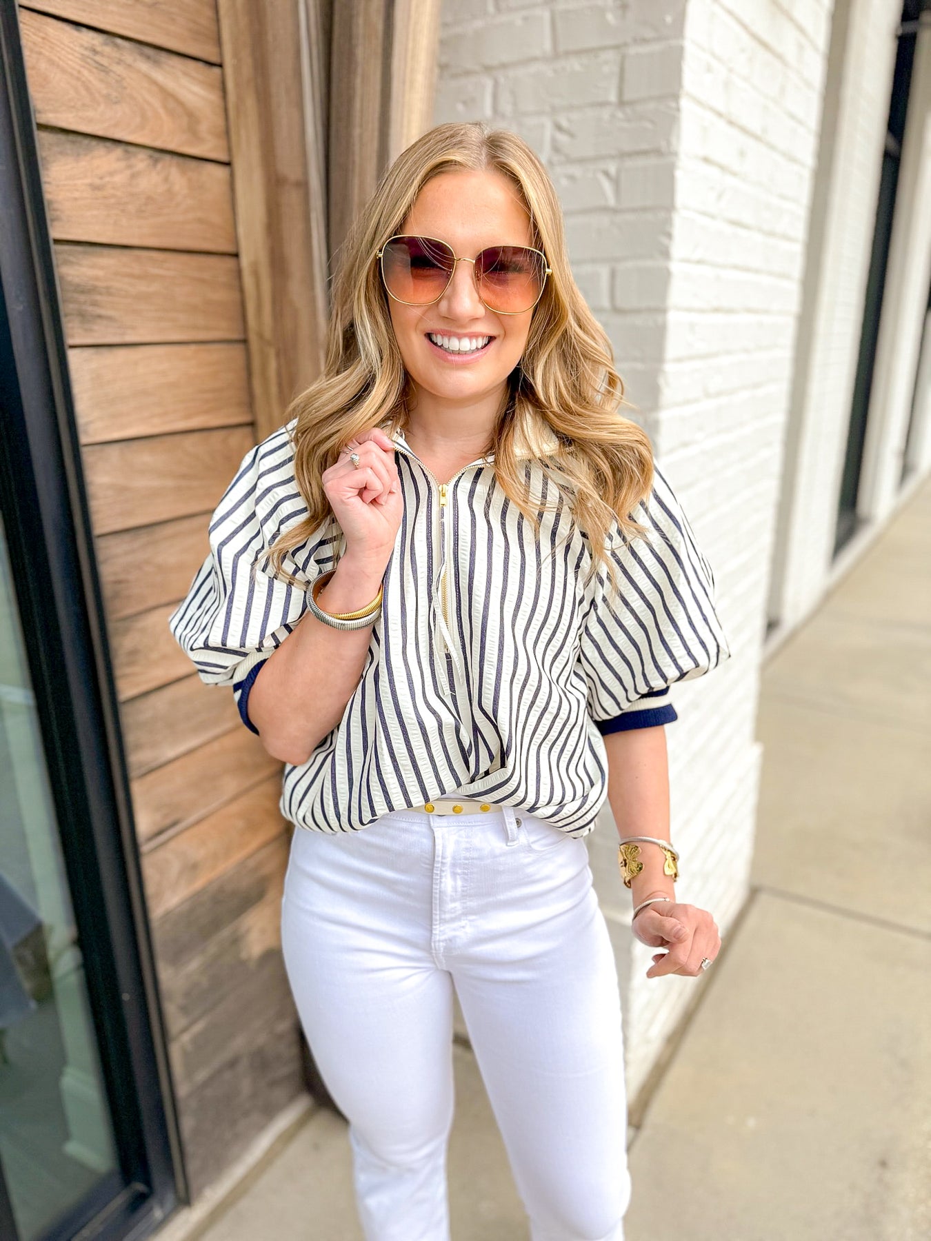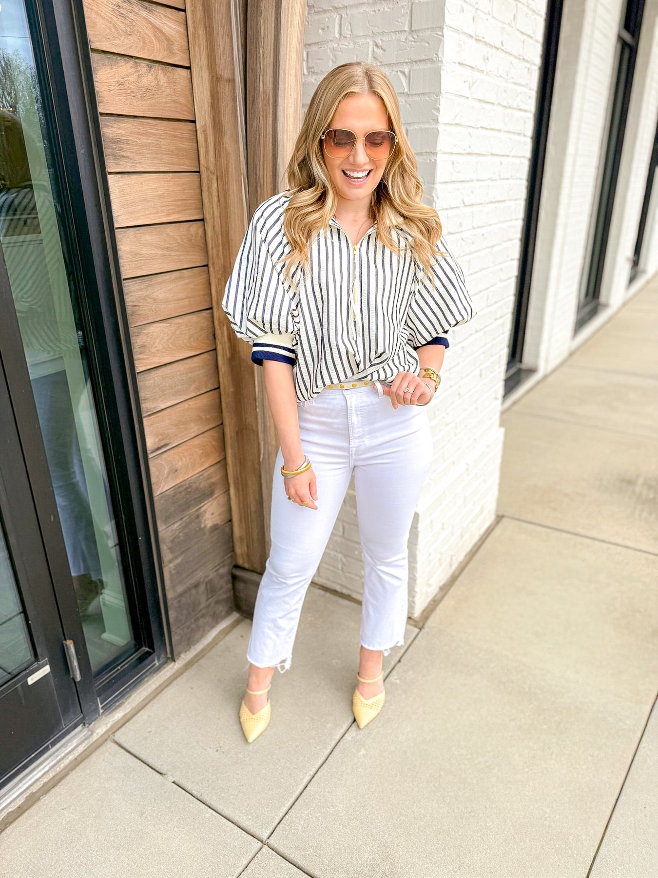 Light, airy, and made to move with you — this flowy striped top is effortless in the best way. The relaxed silhouette gives you that easy drape without feeling oversized, while the breathable fabric keeps it comfortable all day long. It’s polished enough for errands or lunch plans, but relaxed enough to feel like an everyday favorite.