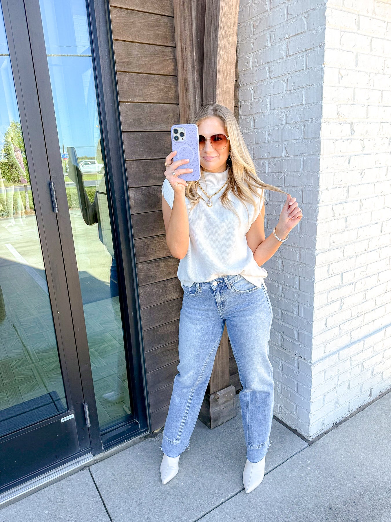 Elevate your fall layers with the COZY CLASSIC MOCK NECK. Featuring a soft herringbone knit and structured ribbed neckline, this sleeveless top blends modern simplicity with timeless texture. Perfect for pairing under blazers, coats, or chunky cardigans for a polished yet cozy look.