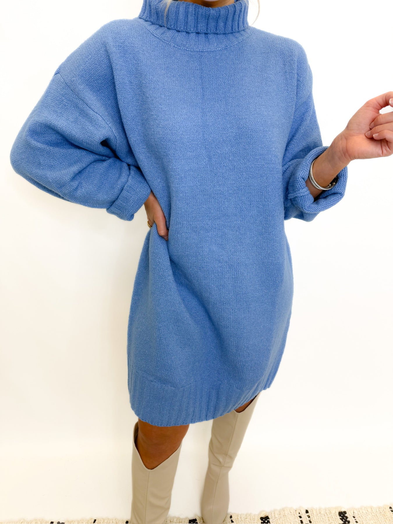 Meet your new fall favorite. THE HAVEN SWEATER DRESS features an oversized silhouette with a ribbed mock neck and cuff details for a cozy yet refined look that’s made for effortless layering.
