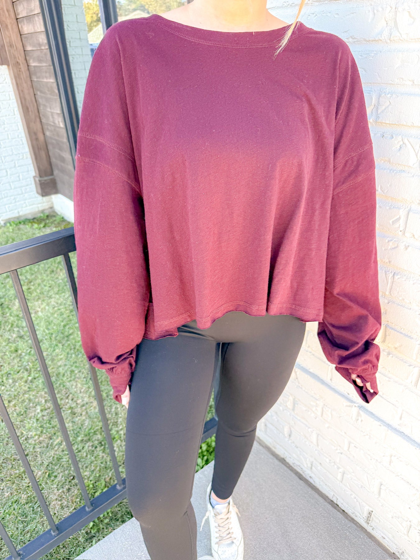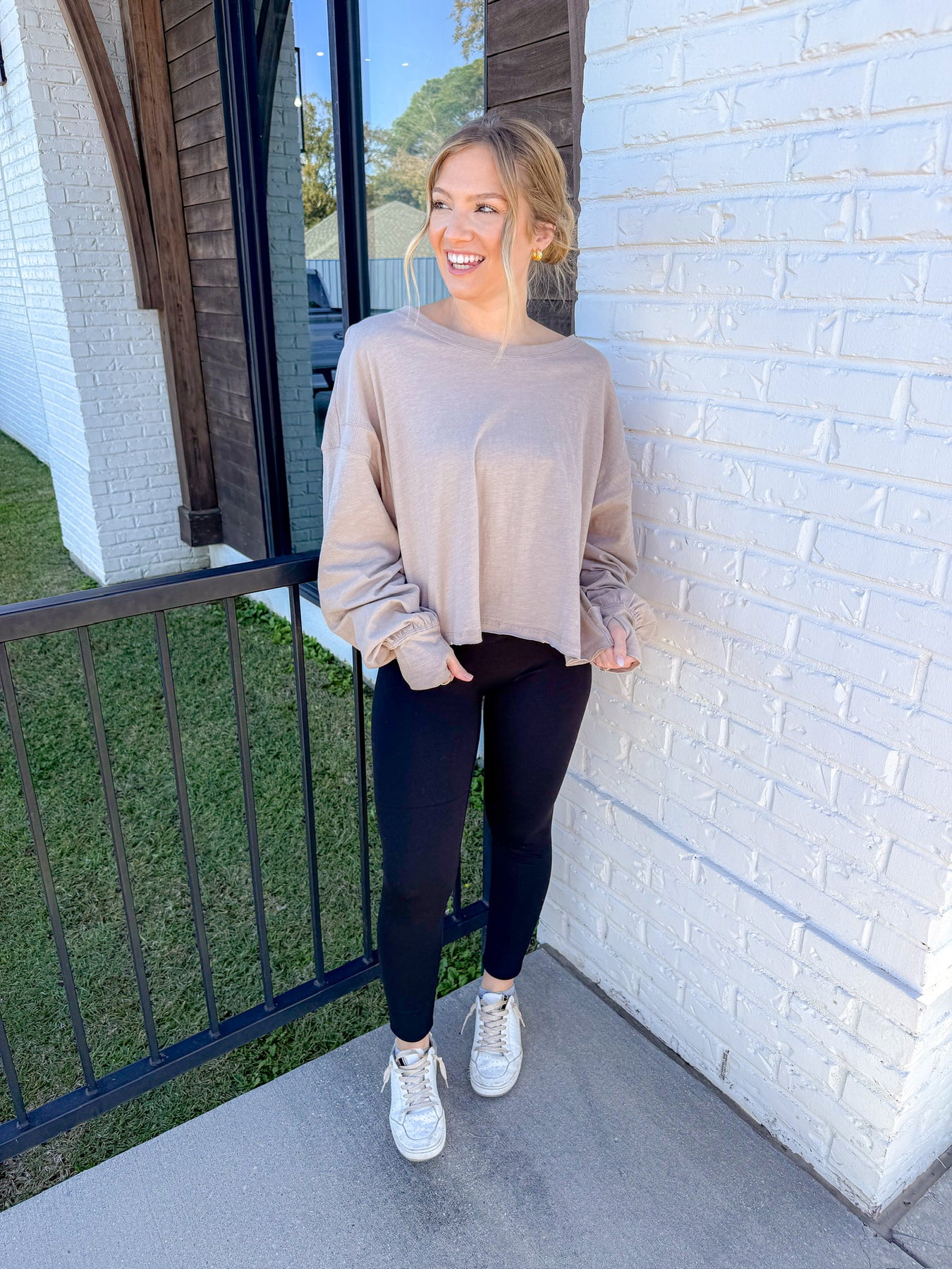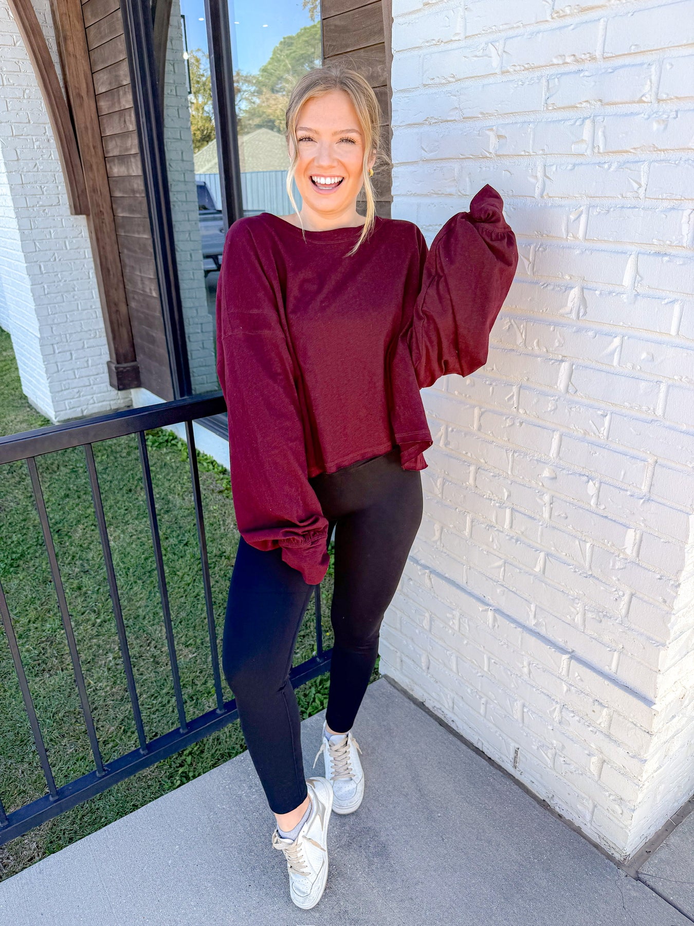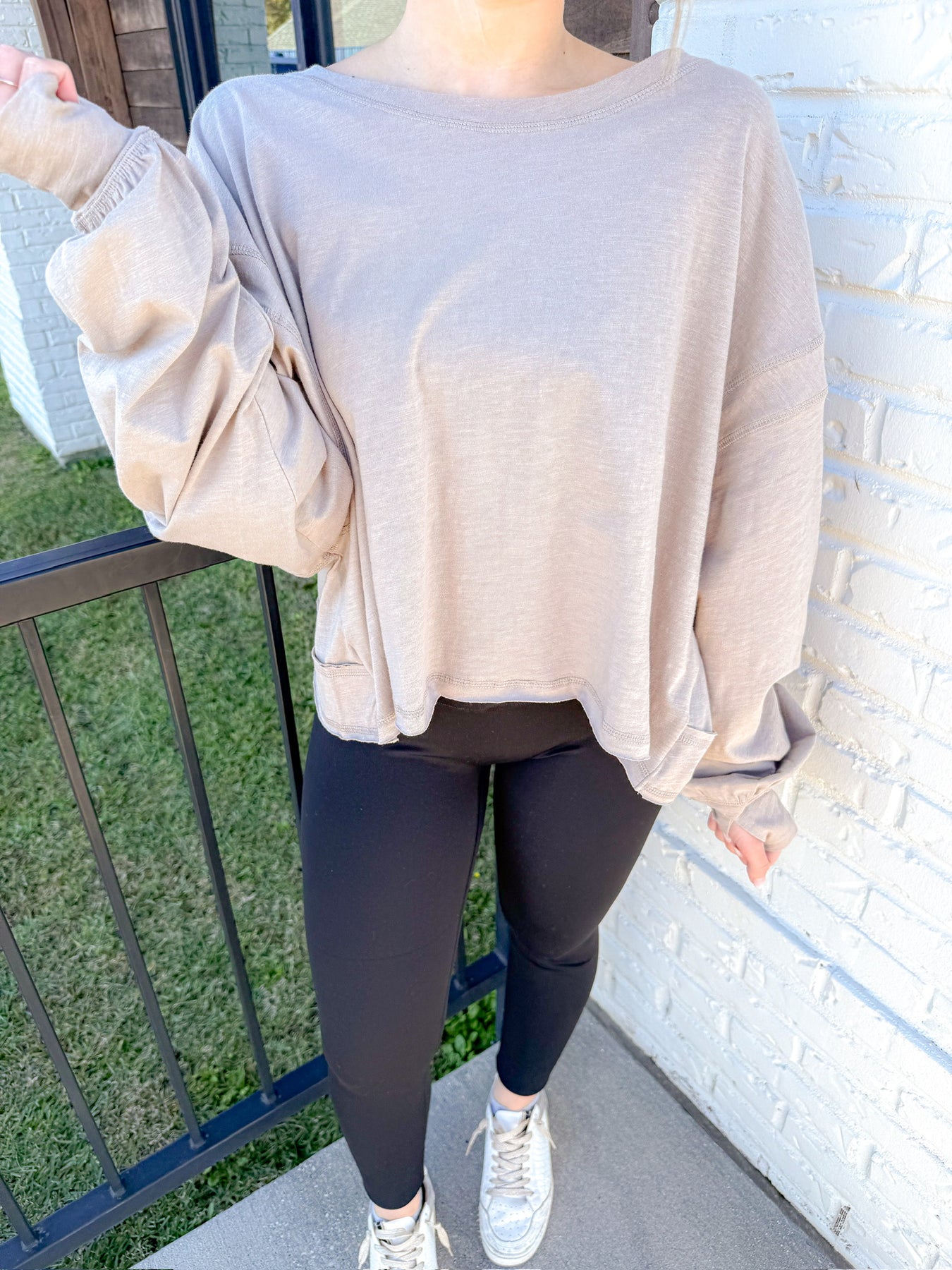 Designed with drop shoulders and roomy long sleeves, this top is easy to wear and effortless to style. Pair it with leggings for everyday comfort or dress it up with denim and boots for a casual-chic vibe. It’s one of those pieces that looks simple—until you turn around.